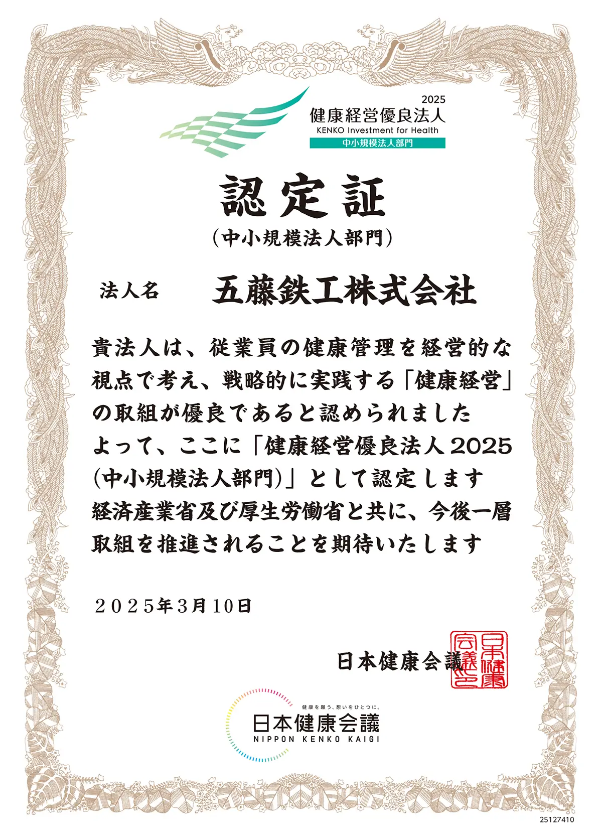 健康経営優良法人認定制度とは、優良な健康経営に取り組む企業を「見える化」し「社員の健康管理を経営的な視点で捉え、戦略的に取り組んでいる企業」として顕彰する経済産業省が推進する認定制度です。